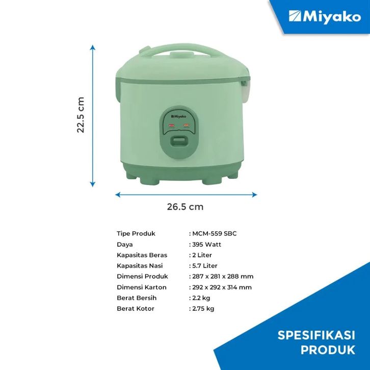 Mejikom Miyako 2 Liter MCM 559 SBC / Magic Com Miyako / Megicome Rice Cooker 2 Liter Miyako / Magicom / Majicom