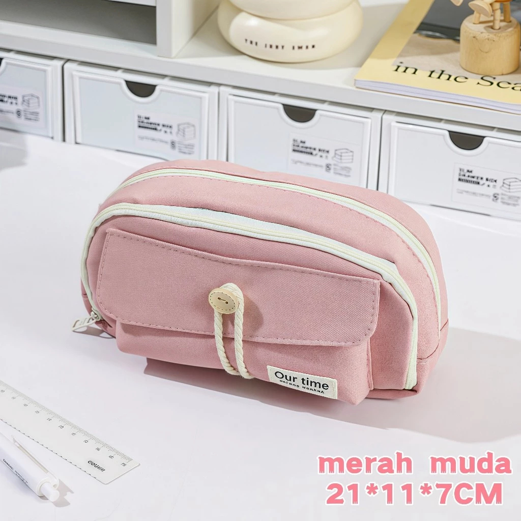 Tempat Pensil Anak Perempuan Kawai Kotak Pensil Multifungsi Kapasitas Besar Motif Polos Aesthetic Terbaru Terlaris Murah