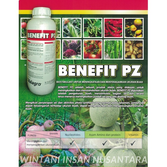 Pupuk Organik Cair Valagro BENEFIT PZ Biostimulant isi 1 Liter - MENINGKATKAN UKURAN BUAH ( BUAH BESAR / SUPERIOR )