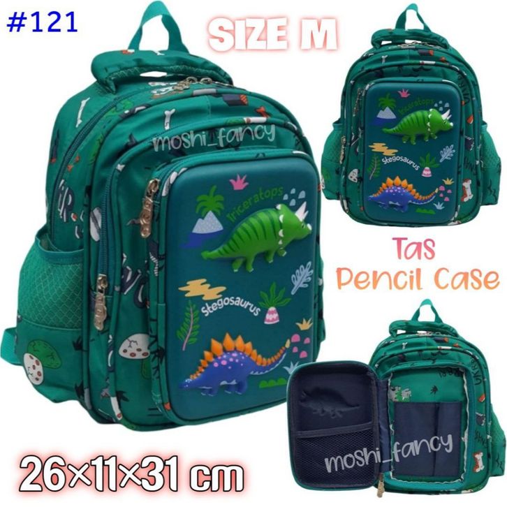 Tas Sekolah Anak Laki Laki Perempuan SD Tas Ransel TK Karakter dan Pencil Case Motif Dino / Tas Gendong Anak Perempuan