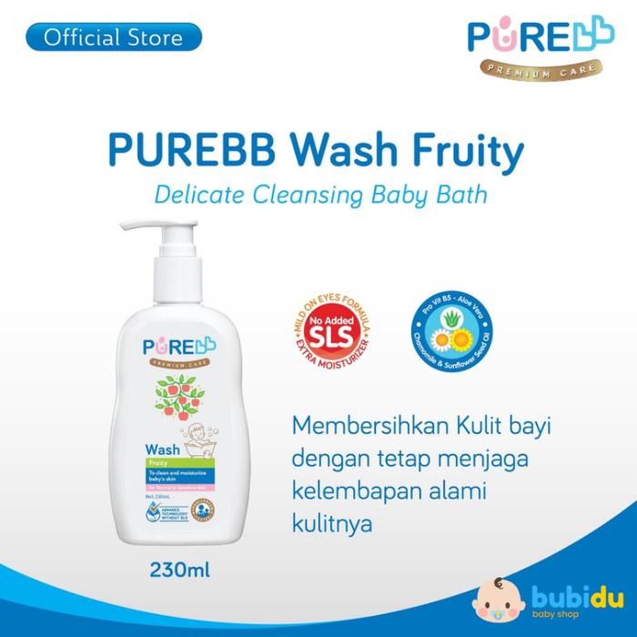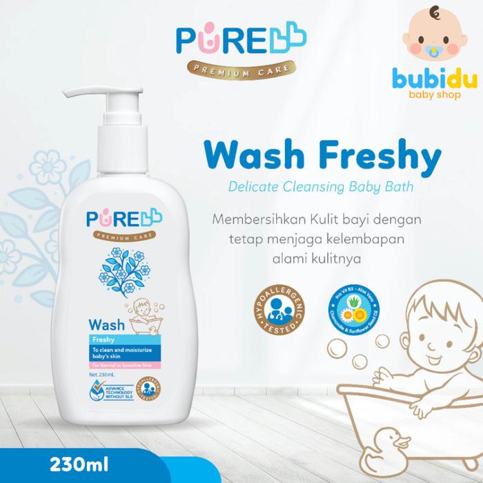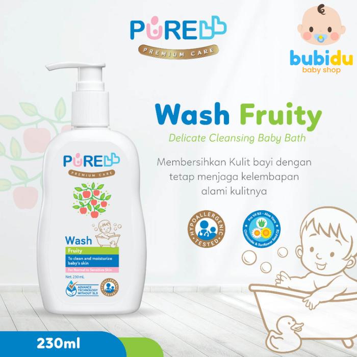 PURE BB Wash 230ml Pump Freshy Fruity | Baby Body Wash Alat Peralatan Sabun Mandi Cair Anak & Bayi Aloe Kulit