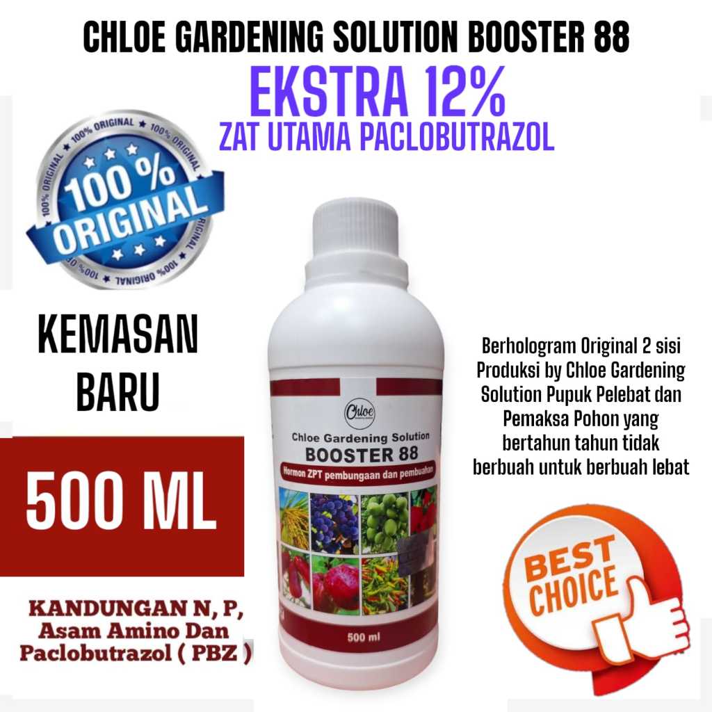 Pupuk Booster 88 Chloe Pemaksa dan Pelebat Tanaman Berbuah Dapat 12 Botol 500ml