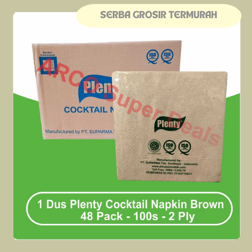 Tissue Plenty Cocktail Napkin Brown Coklat - isi 48 Pack