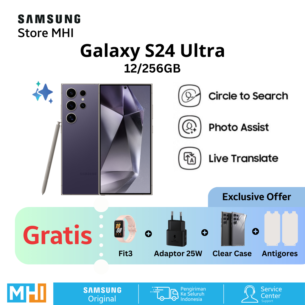 Samsung Galaxy S24 Ultra Handphone AI, Original, Kamera 200MP 12/512GB 12/256GB