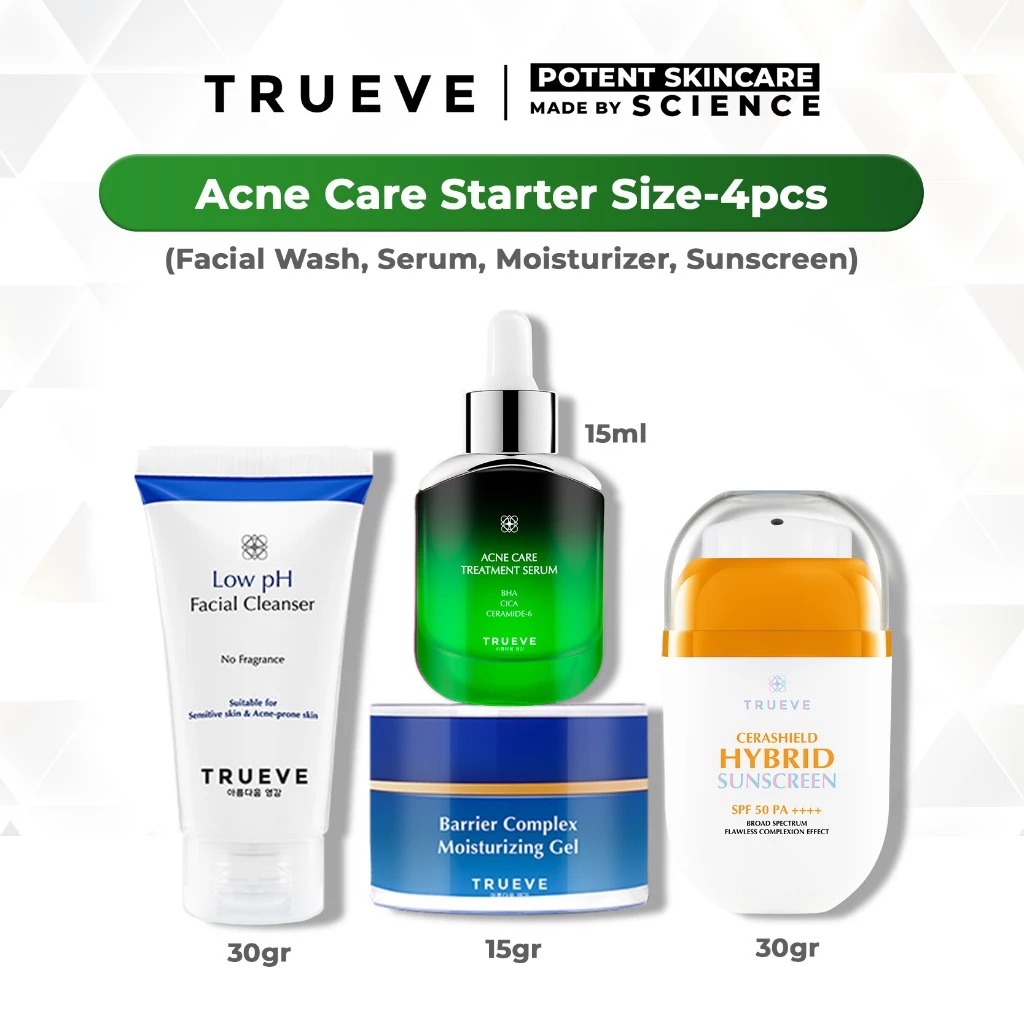 Skincare Trueve Basic Set Acne-prone Skin 4PCS [Serum Moisturizer Cleanser and Sunscreen] Gratis Ongkir
