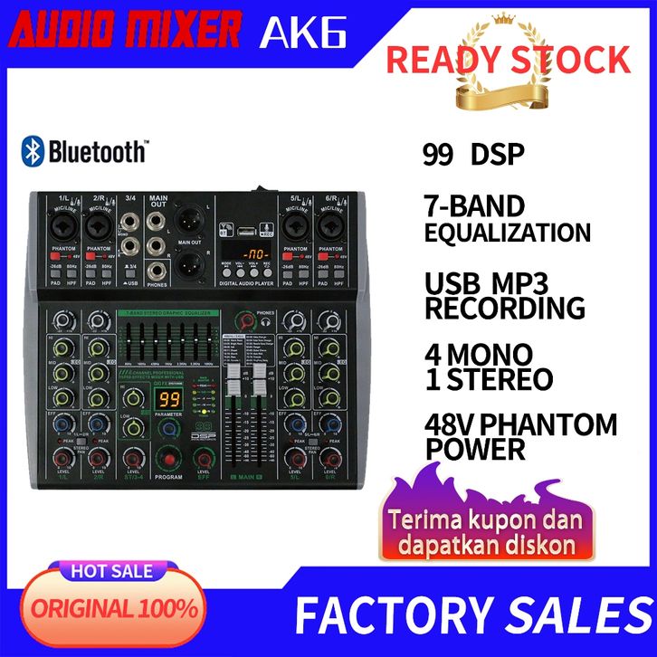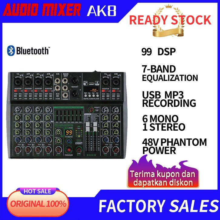 Ready Stock AIBEDO AK4/6/8 Saluran Mixer Audio Profesional Dapat dihubungkan ke catu daya mobil 12v 99 DSP USB Mini Audi