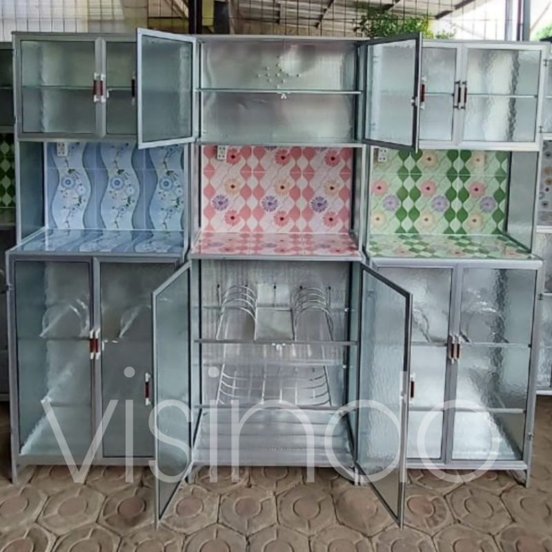 TERLARIS RAK PIRING LEMARI DAPUR ALUMINIUM KERAMIK 2 PINTU