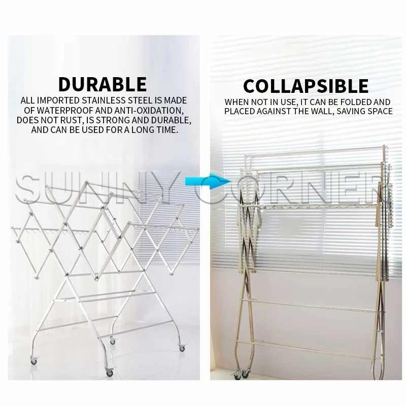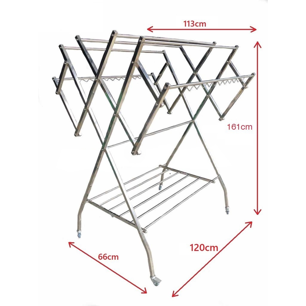 Jemuran Baju Stainless Jumbo Pake Roda Jemuran Pakaian Stainless Steel Jemuran Baju Lipat Jemuran Baju Kokoh Anti Karat