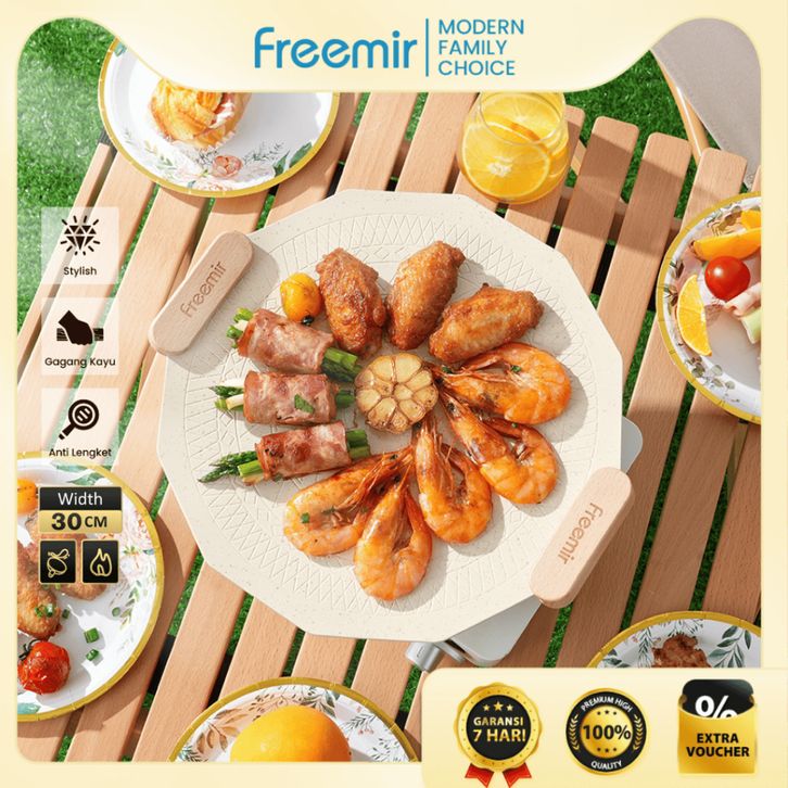 Freemir Panggangan BBQ Grill Pan Gagang Kayu Anti Lengket Original Terbaru