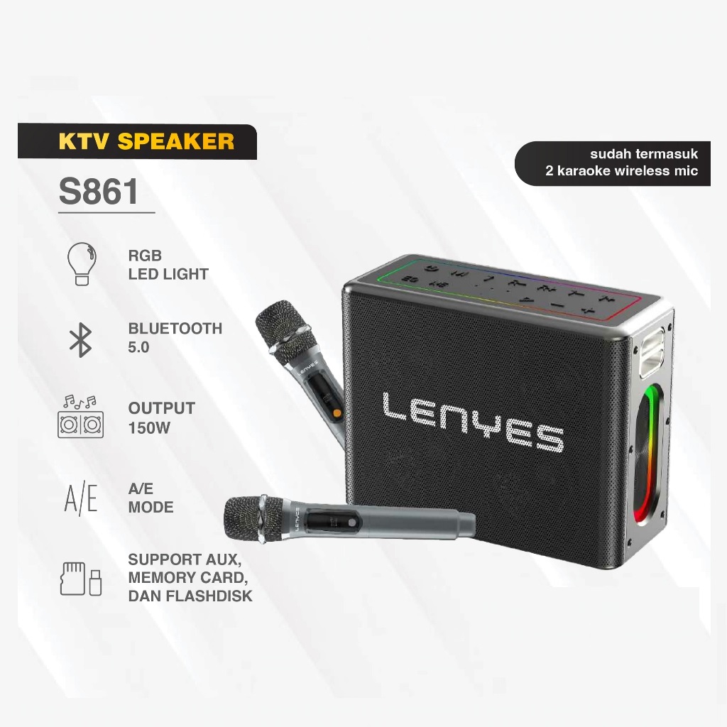 LENYES S861 150W KTV RGB LED Light Wireless Speaker + Microphone Karaoke Bluetooth 5.0 Portable High Power