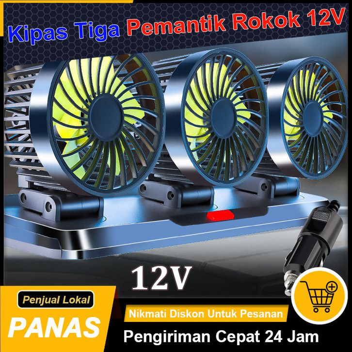 Kipas Mobil Original Tiga Kecepatan Kipas Angin Mobil 12v 3 Kepala Kipas Rotasi 360° Angin Mencapai 5 Tempat Duduk Seny