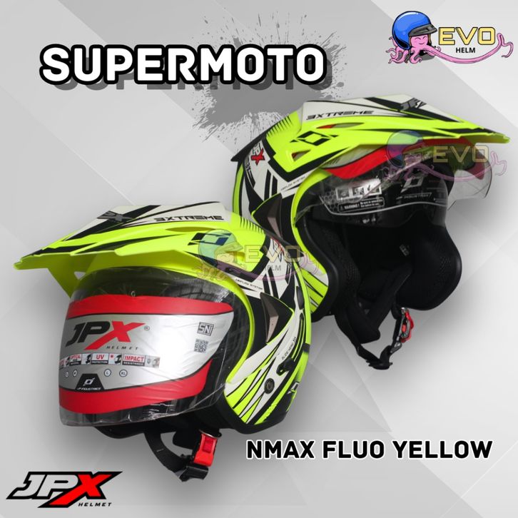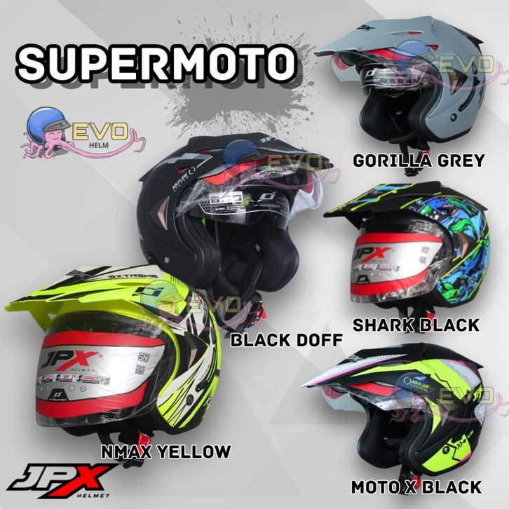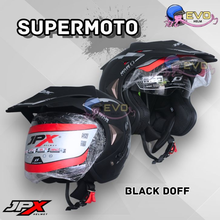 HELM JPX SUPERMOTO MOTIF / SOLID DOUBEL VISOR ORIGINAL, HELM HALF FACE PRIA WANITA, HELM SEMI CROSS
