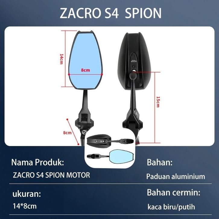 ORIGINAL Spion Motor dapat diputar 360 derajat/Cermin biru dan putih anti silau onesd