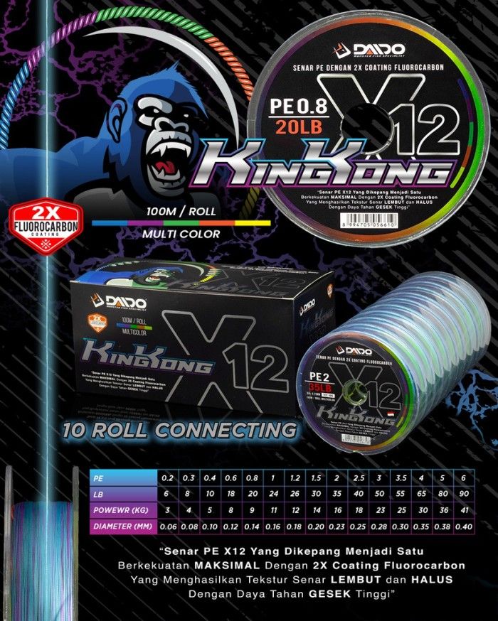 Senar Pancing Senar Benang Pancing PE DAIDO KINGKONG X12 100 Meter Konekting PE 0.2 - PE 6 Murah - Engkus Fishing - PE