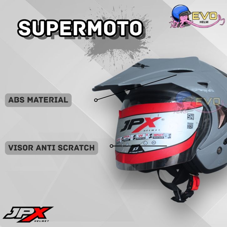 HELM JPX SUPERMOTO MOTIF / SOLID DOUBEL VISOR ORIGINAL, HELM HALF FACE PRIA WANITA, HELM SEMI CROSS