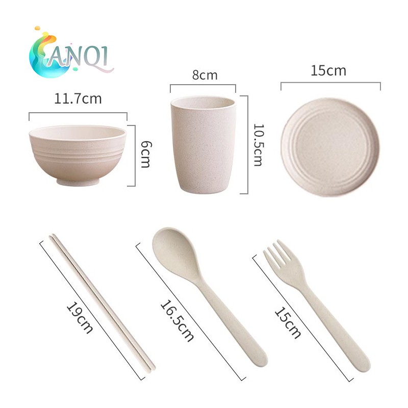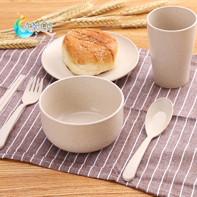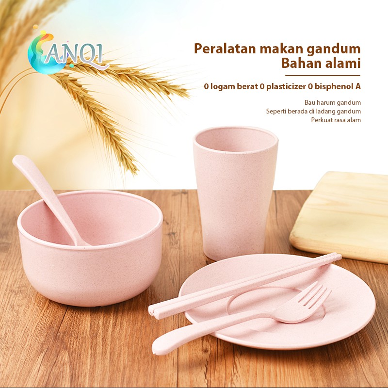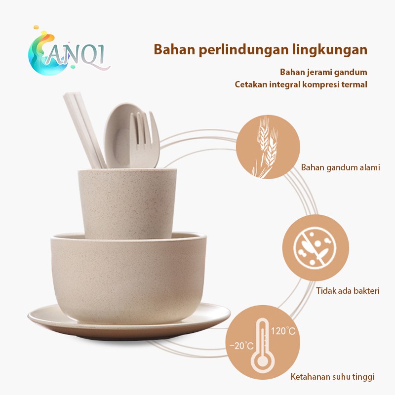 ANQI PGandum 6 Pcs Peralatan Makan Set Mangkuk Piring Sendok Peralatan Piring Makan mini seru /VS-12