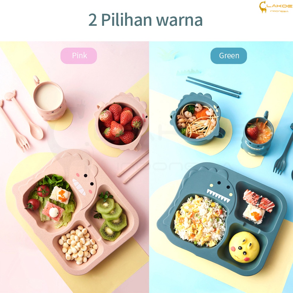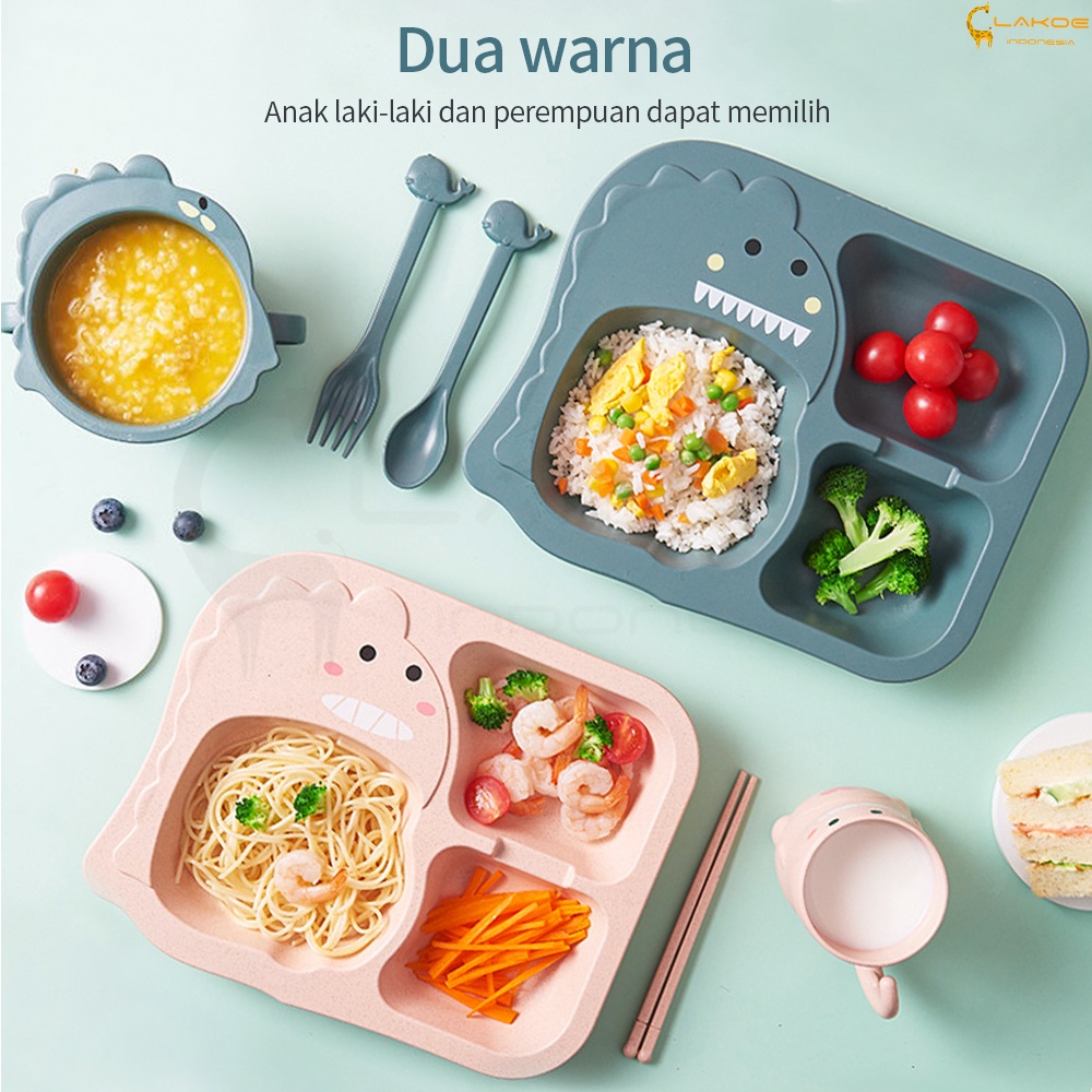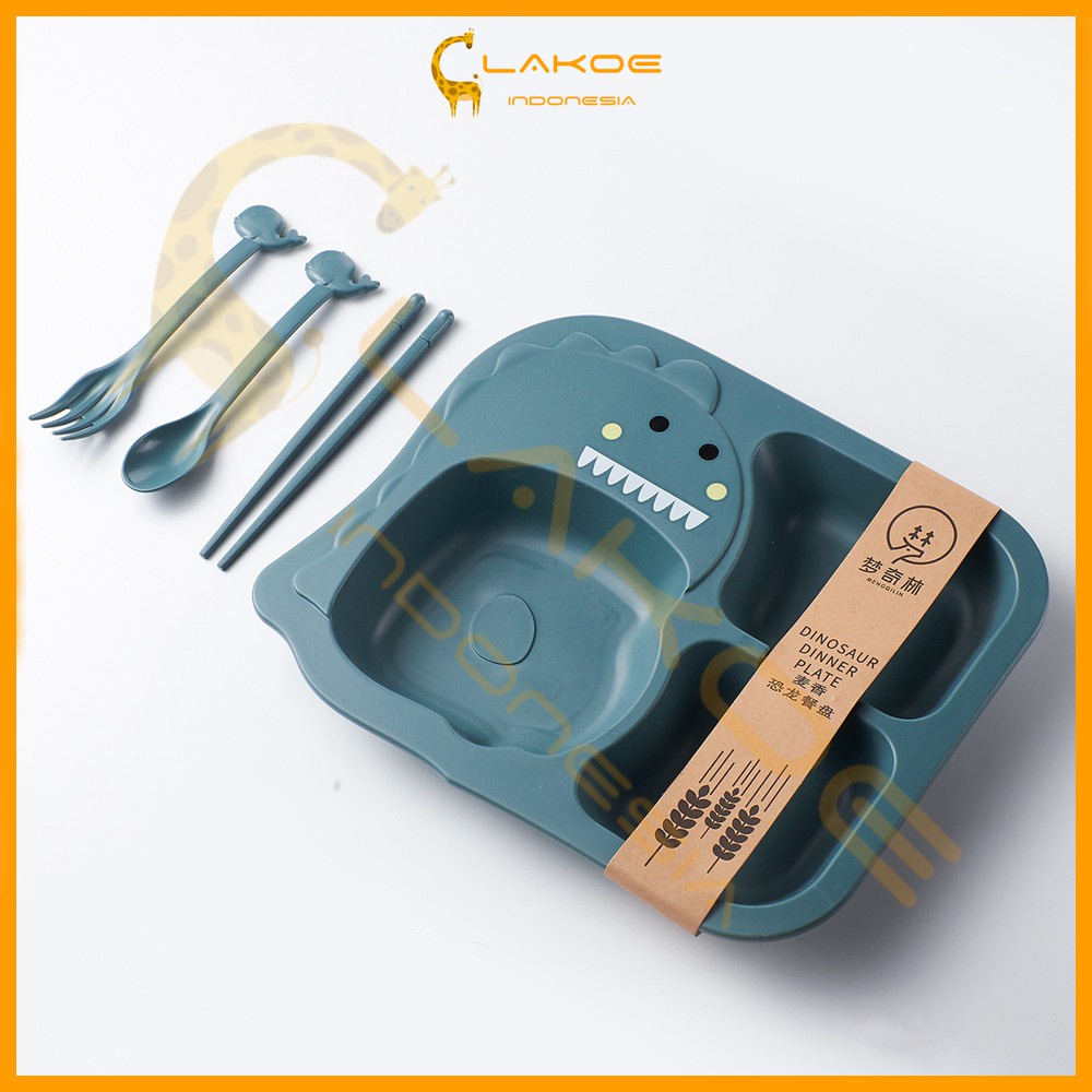 LAKOE Set Piring Makan Anak Dino 4in1 Set Alat Makan Anak Dino 4in1