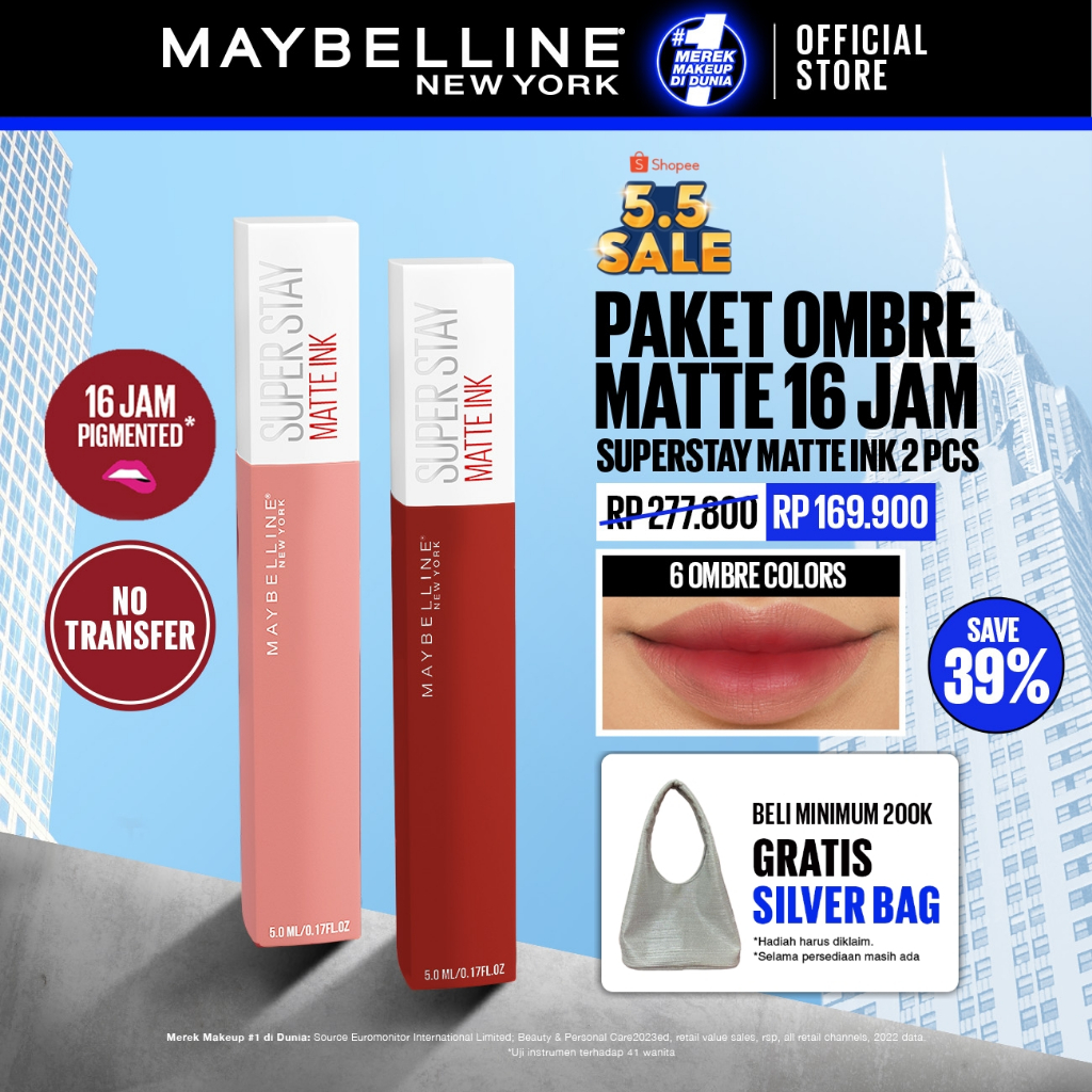 LIpstik Maybeline Matte Ori Paket Hemat Superstay Matte Ink 2 pcs Ombre Set Lipstick - Long Lasting