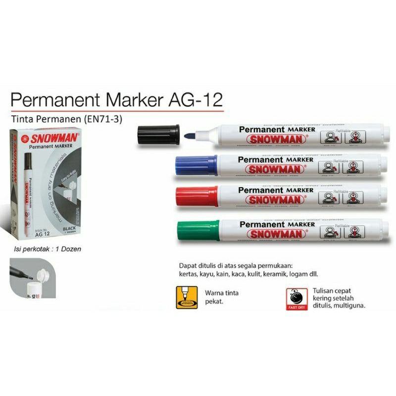 Spidol Permanent Snowman AG-12 Warna Hitam, Merah, Biru