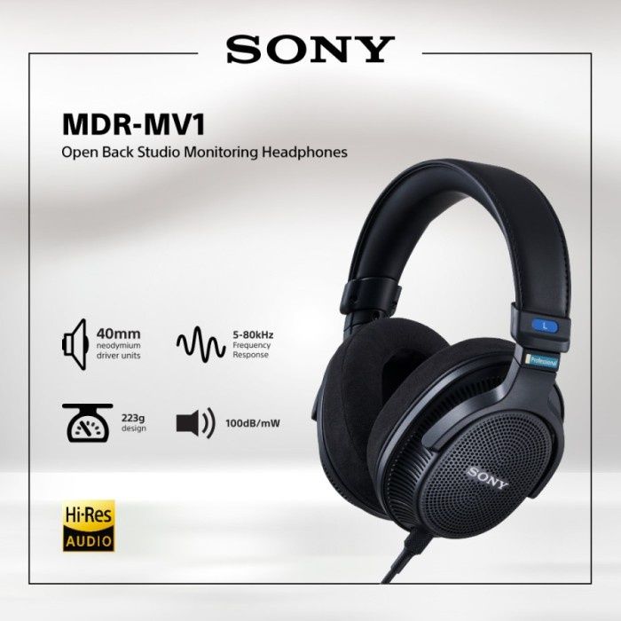 Sony MDR-MV1 / MDR MV1 Open Back Studio Monitor Wired Headphones 6.3mm