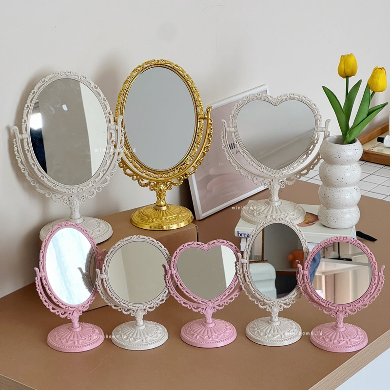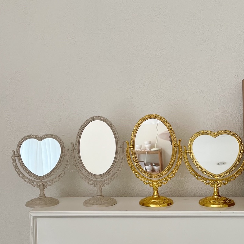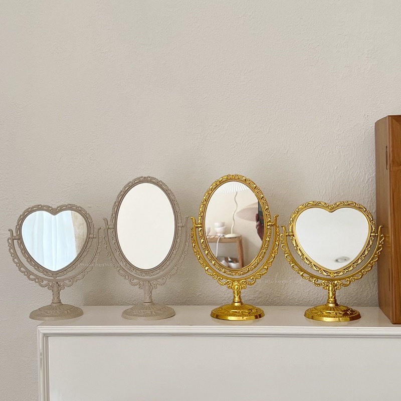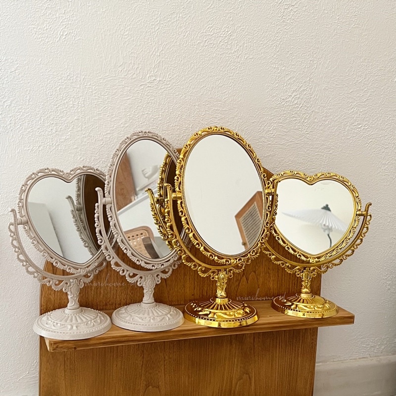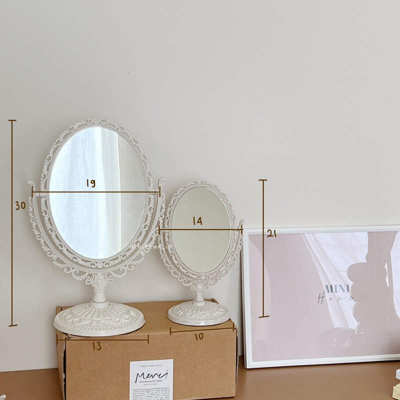 Cermin Rias Putar 2 Sisi Oval Makeup Vintage Korean Style - Cermin Meja Rias Putih Gold