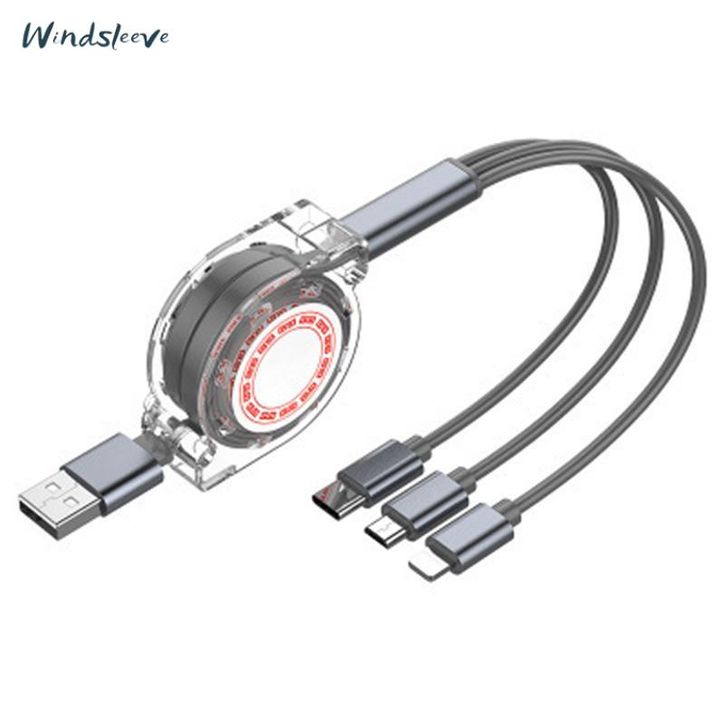 3 In 1 Kabel Pengisi Daya USB Tipe C Kabel Mikro Dapat Ditarik untuk Ponsel Samsung Xiaomi Huawei Kabel Pengisian Cepat-