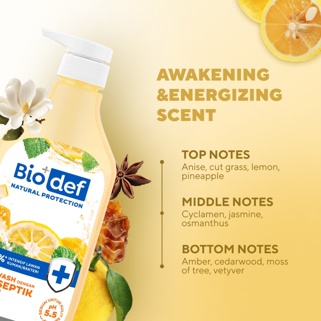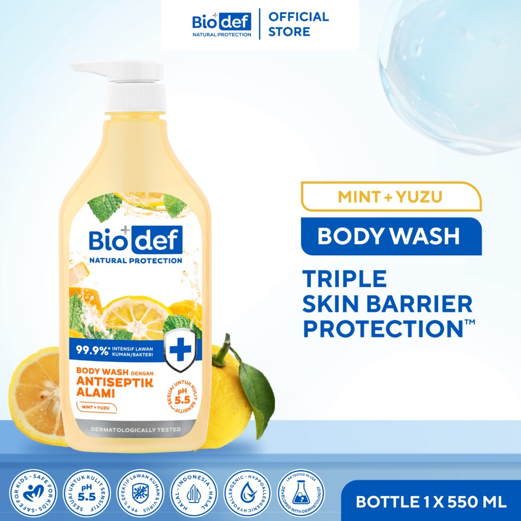 Biodef Mint - Yuzu Botol 550Ml| Vitamin Sabun Mandi Cair Antiseptik Aman Dan Halal | Sabun Mandi Cair Untuk Kulit Sensit