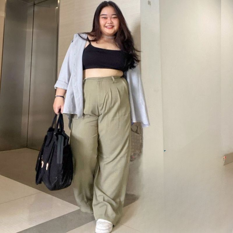 (Gratis Ongkir) Celana Kulot JUMBO XXL Crinkel Airflow Flowy Jatuh Premium Highwaist Wanita Loose Cullote Pants