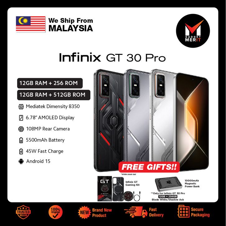 Infinix GT 30 Pro 5G Smartphone | MediaTek Dimensity 8350 Ultimate | 6.78" AMOLED Display | 108MP