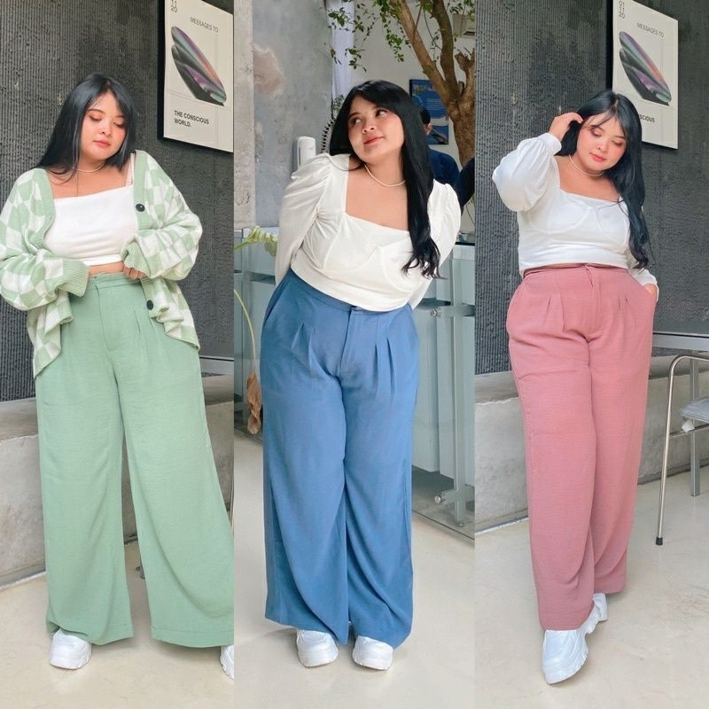 (Gratis Ongkir) Celana Kulot JUMBO XXL Crinkel Airflow Flowy Jatuh Premium Highwaist Wanita Loose Cullote Pants
