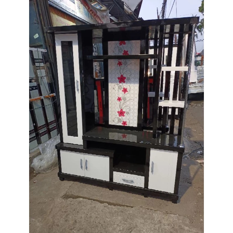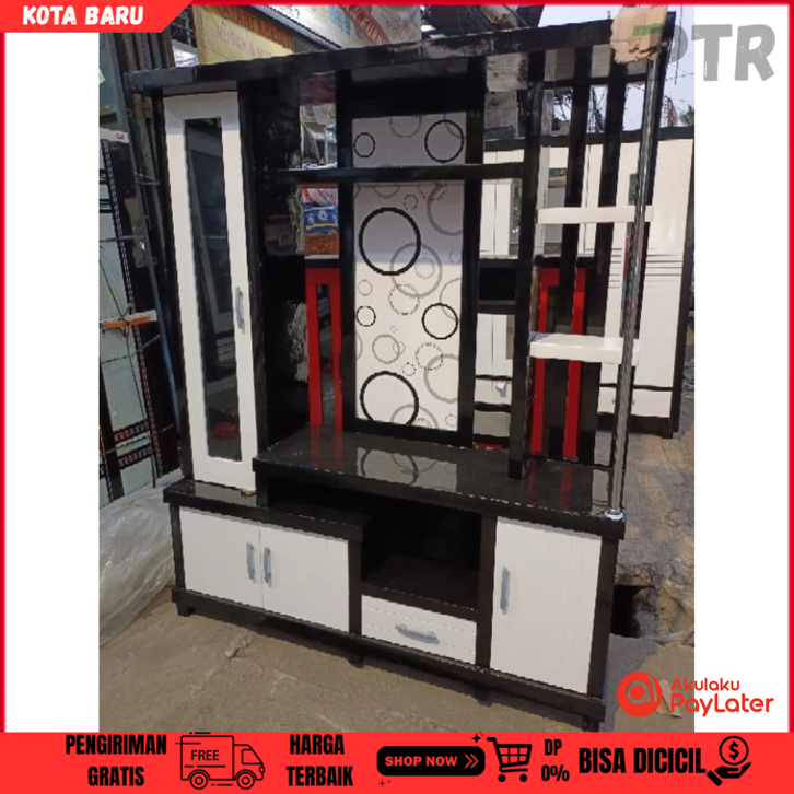 lemari pajangan ruang tamu Bupet Bufet TV Meja TV Rak TV Lemari Hias TV Pintu 4 Laci Model Minimalis Kayu Besar Jumbo