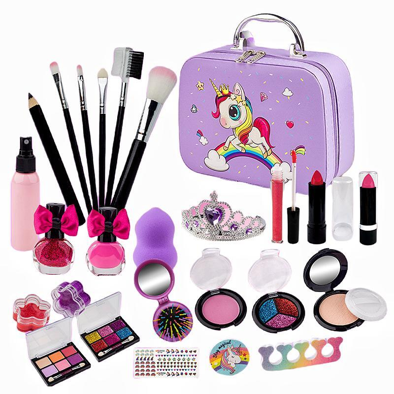 NODIA 32Pcs Mainan Kosmetik Kecantikan Anak Kasus Peralatan Kotak Portable Tas Rias Fashion Make Up Set untuk Gadis Ulan