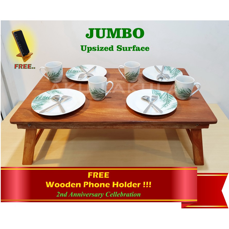 Meja Lipat Lesehan Kayu Meranti Ukuran JUMBO 90x60cm, Meja Serbaguna