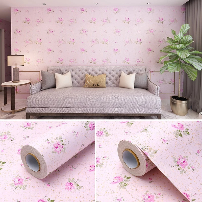 Wallpaper Dinding Roll Motif Shaby Pink Ukuran 7m x 45cm Series Premium Wallstiker Ruang Tamu Kamar Tidur Terlaris Mura