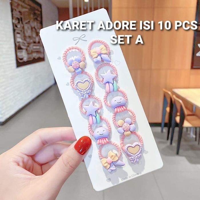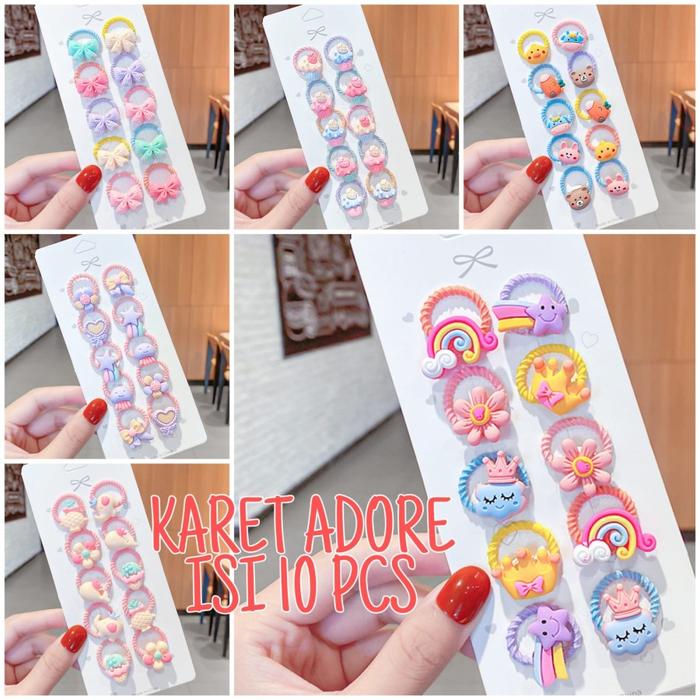 BAJUKIDDIE KARET RAMBUT ADORE IKAT RAMBUT MOTIF LUCU KUNCIRAN Anak - ADORE SET A k-an plastik
