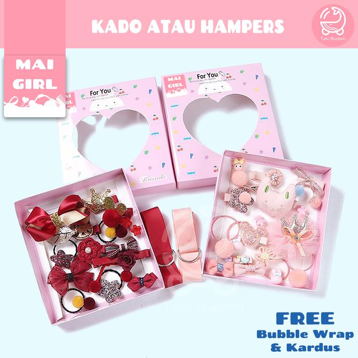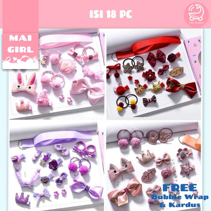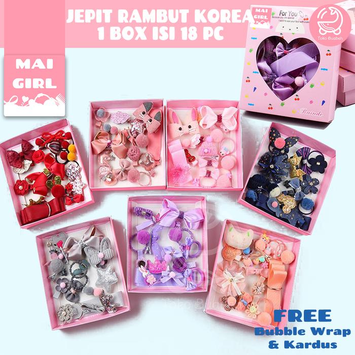 Mai Girl box Set 18 Pieces Aksesoris Rambut Korea Anak Bayi Jepit Hair Clip Ikat Rambut Perempuan - Merah