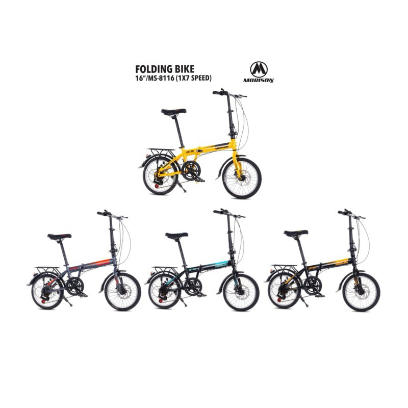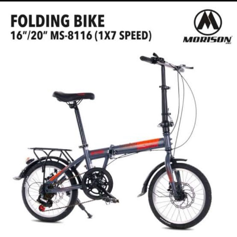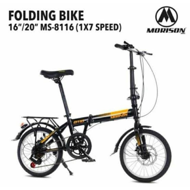 Sepeda Lipat Morison MS-8116 7 Speed 16 20 Inch Double Cakram Dilengkapi Boncengan & Spakbor