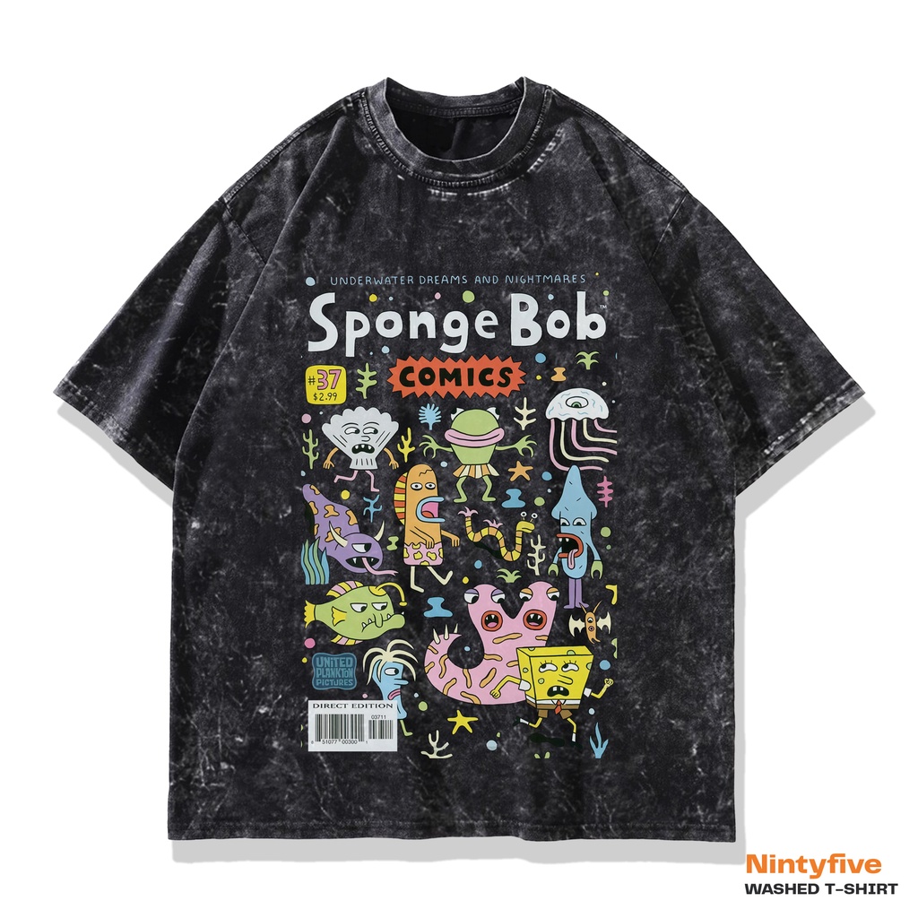 Baju Spongebob Comics Oversize Washed Cartoon 90s Printed On Cotton Material