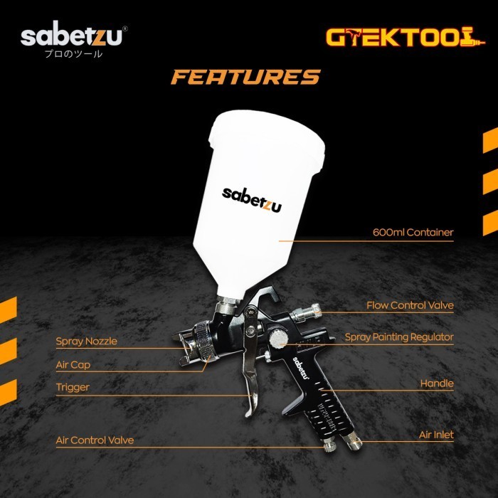 Sabetzu Spray Gun HVLP Mini Semprotan Angin Cat Tabung Atas 600ml 1.4