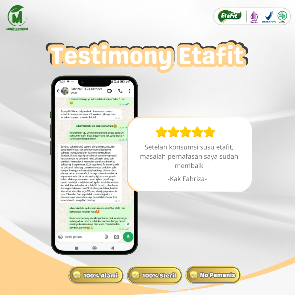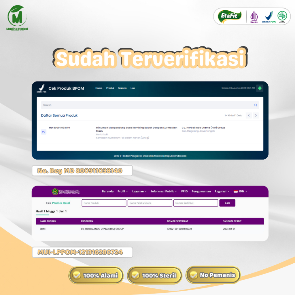ETAFIT - Susu Kambing Etawa Murni + Habatussauda Jahe Merah dan Kurma Arab yang Berkhasiat Membantu Obati Batuk Menahun