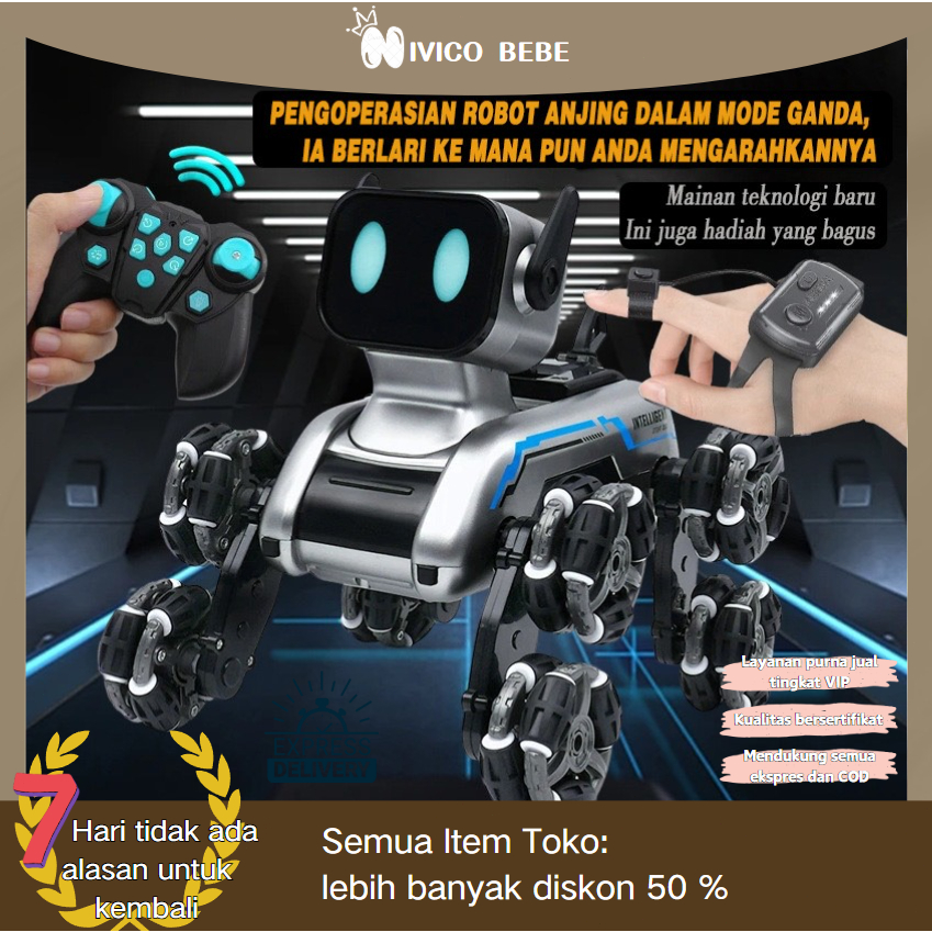 NIVICO BEBE Mobil Remote Control Mainan Remote Control Anjing Robot Cerdas, Mainan Anjing Mekanis Aksi Delapan-roda/Main