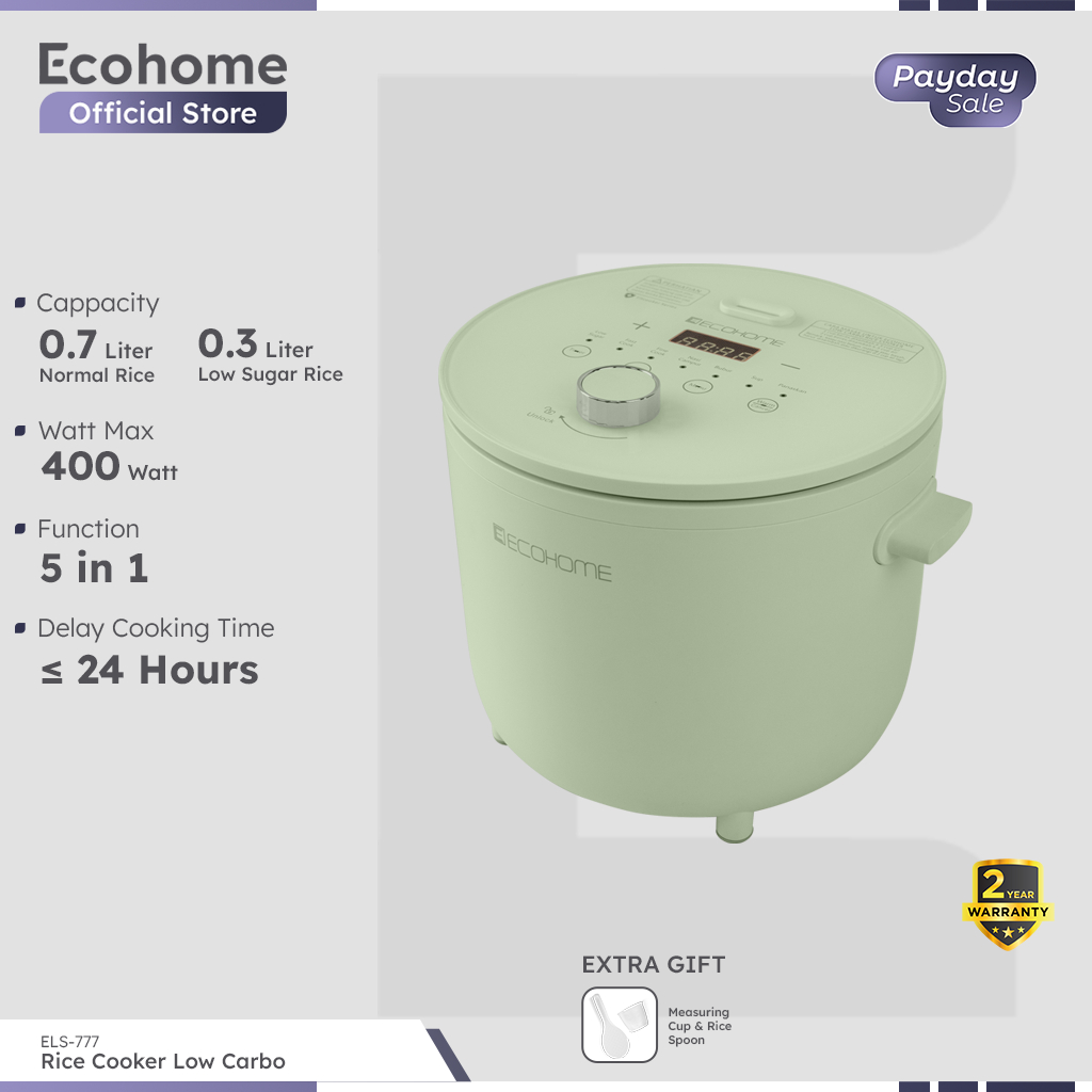 RICE COOKER LOW CARBO ECOHOME ELS777 LOW SUGAR 0.8L PENANAK NASI LOW WATT SERBAGUNA MAGIC COM MAGICOM MEJIKOM MAGIC JAR