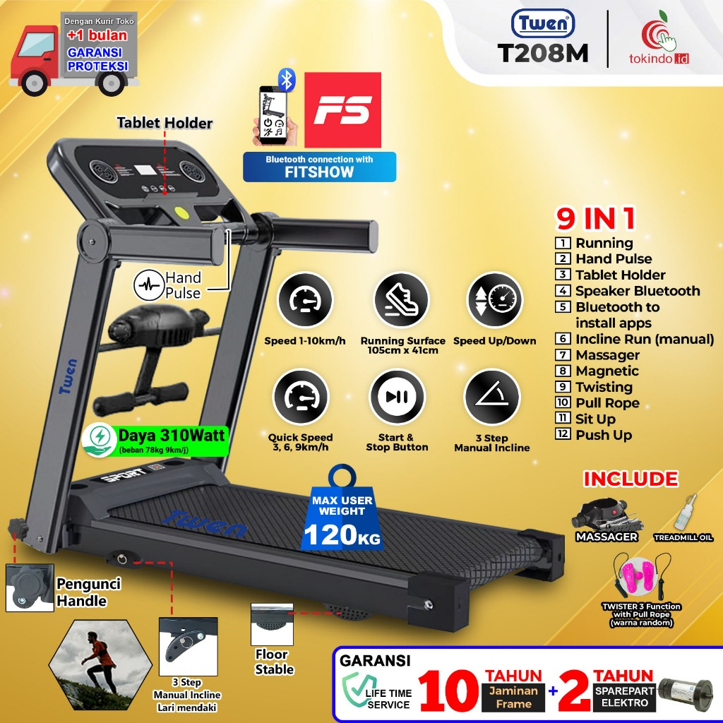 TREADMILL ELEKTRIK TWEN T205 T208 T208M PORTABLE ELECTRIC LISTRIK LOW WATT ALAT OLAHRAGA GYM LIPAT MURAH TANPA DP