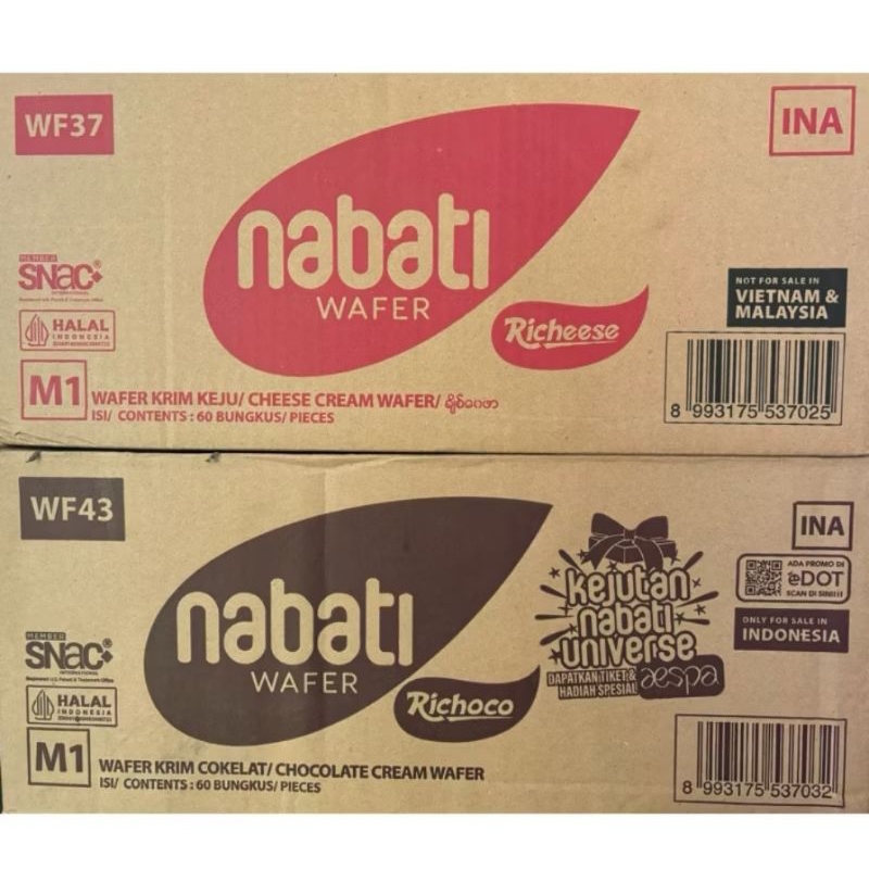 (BISA MIX RASA)WAFER NABATI 1 DUS RICHESE NABATI ISI 60 PCS KEJU COKLAT NABATI 2000