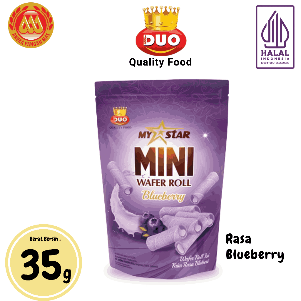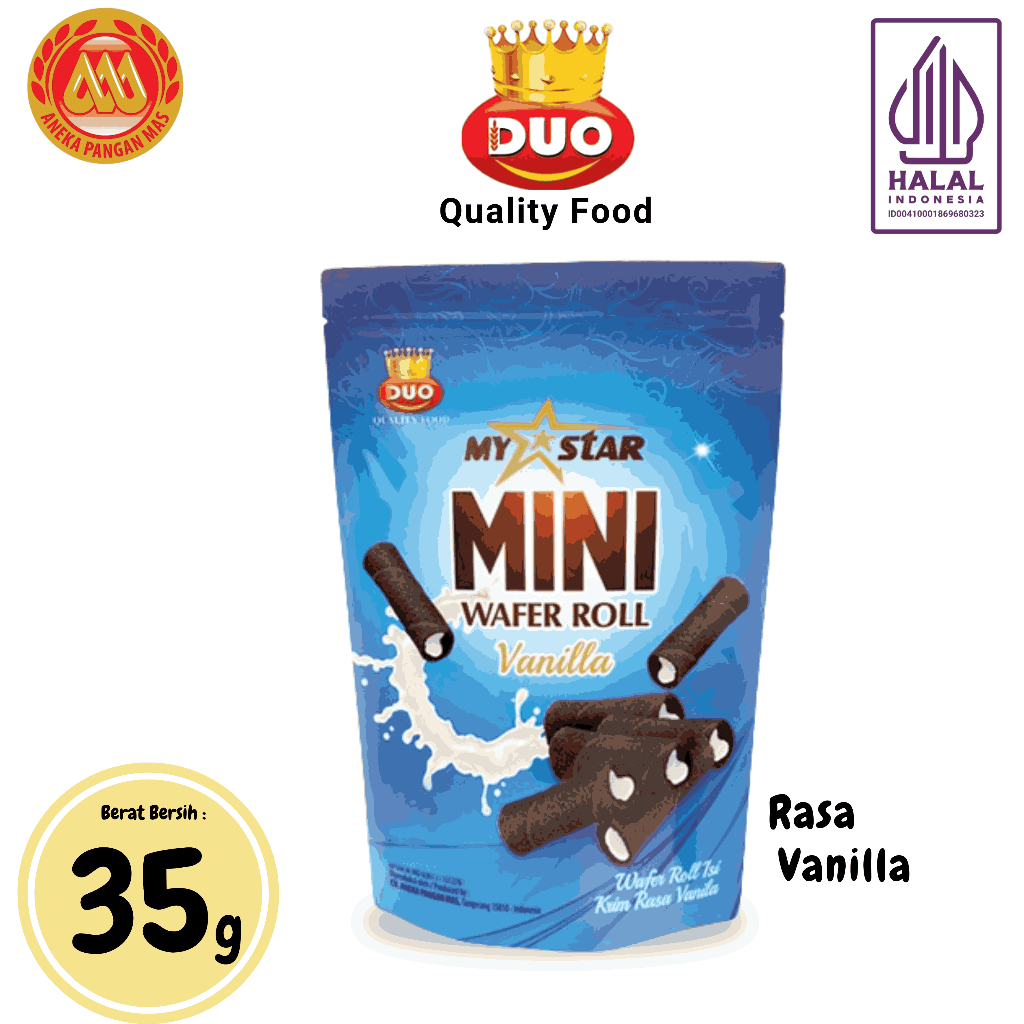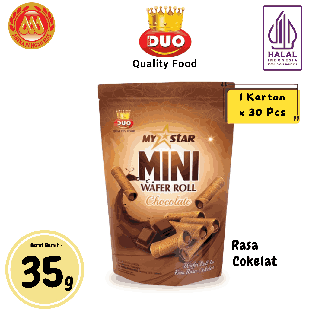 DUO My Star Mini Wafer Roll Cokelat (1 Karton x 30 pcs) - Netto 35gr Snack Cemilan Anak Murah