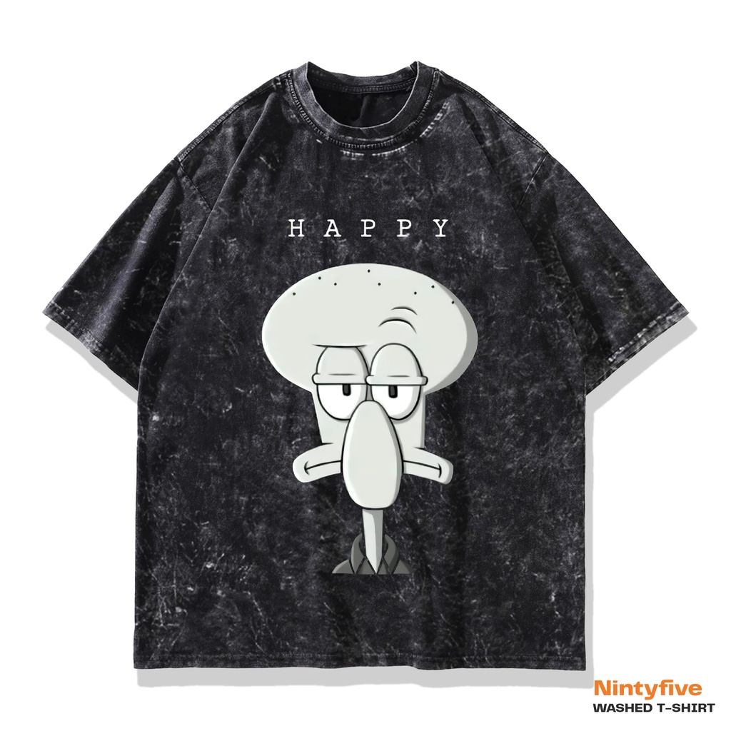 T shirt Cartoon Squidward Happy Face | Kaos Washed Oversize