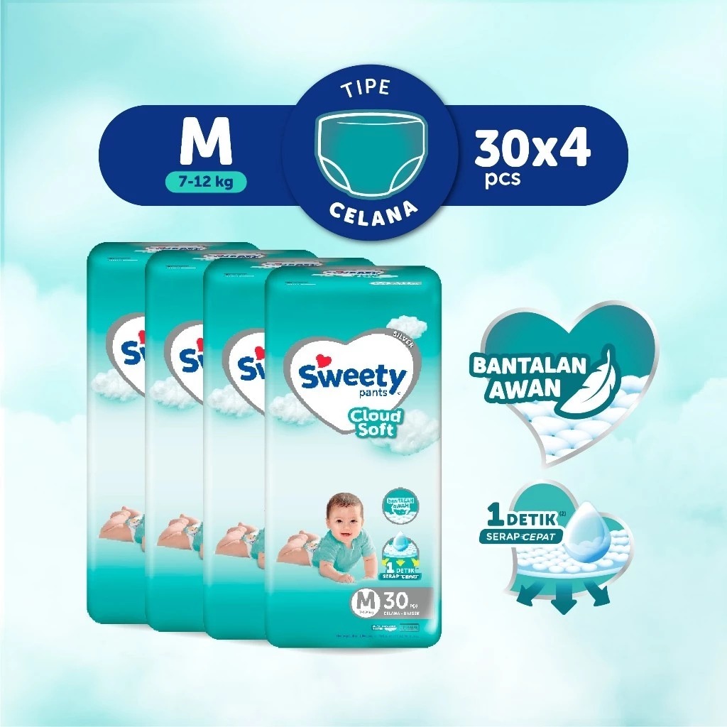 GRATIS ONGKOR - Pampers Sweety Silver Pants Cloud Soft Popok Celana Baby Diapers Ukuran M 4 x 32s / 1 DUS