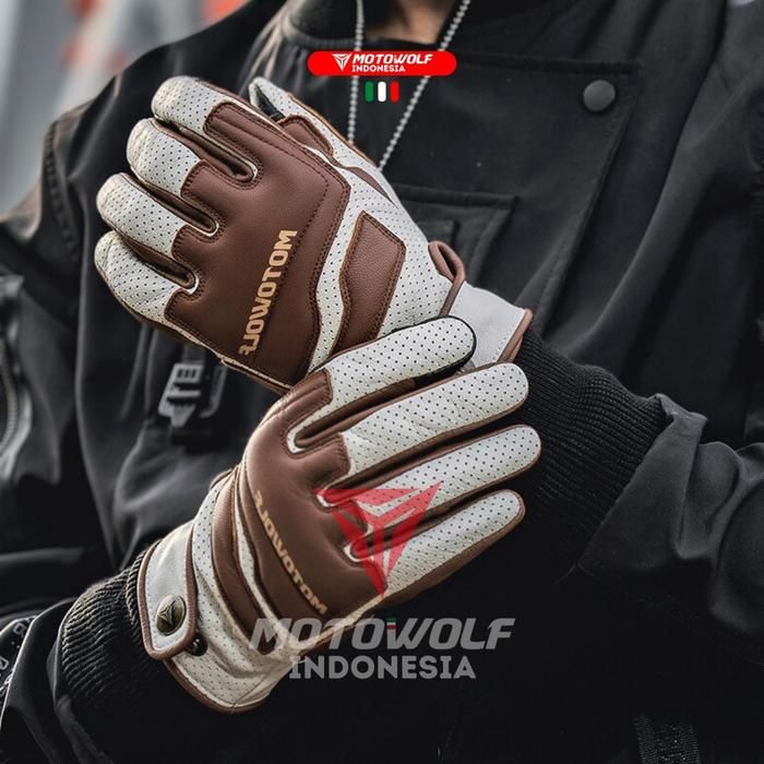 Sarung Tangan Motor Motowolf Sarung Tangan Motor Retro Kulit Touchscreen Soft Protector 0345 - Coklat 2XL