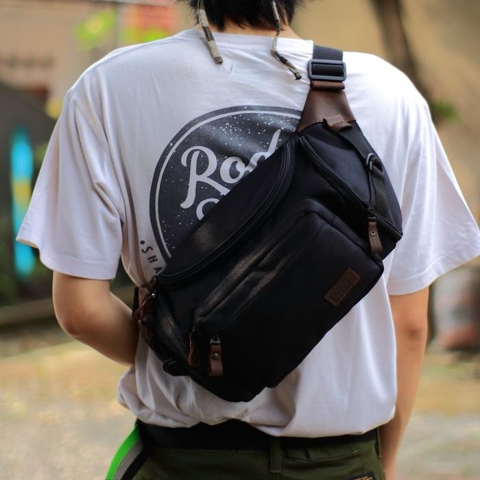 Pusiill-Waistbag Kombinasi Kulit asli+Cordura / Tas selempang Pria & Wanita Pinggang multifungsi liburan