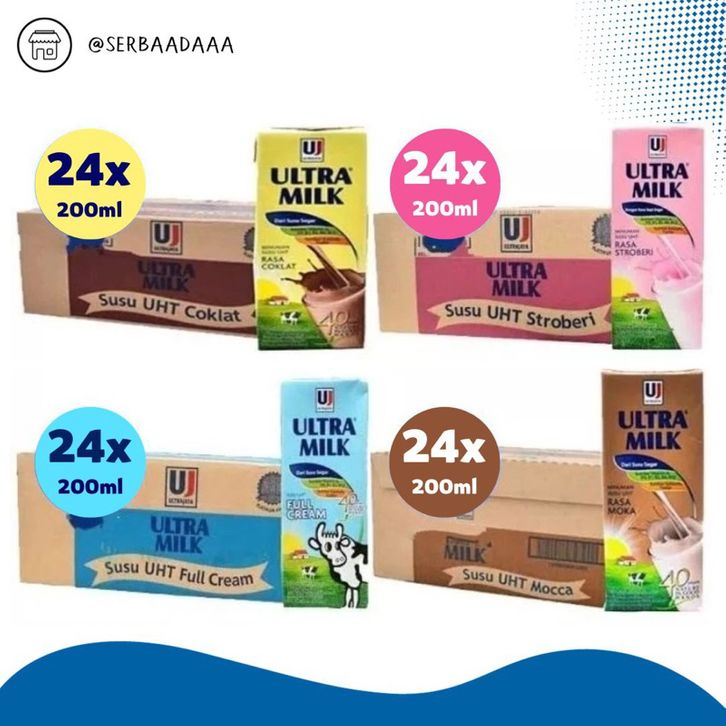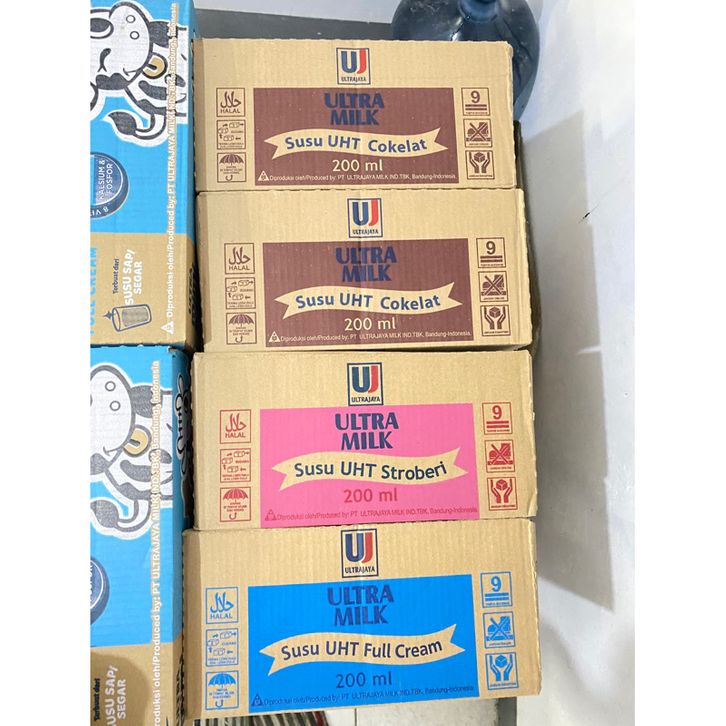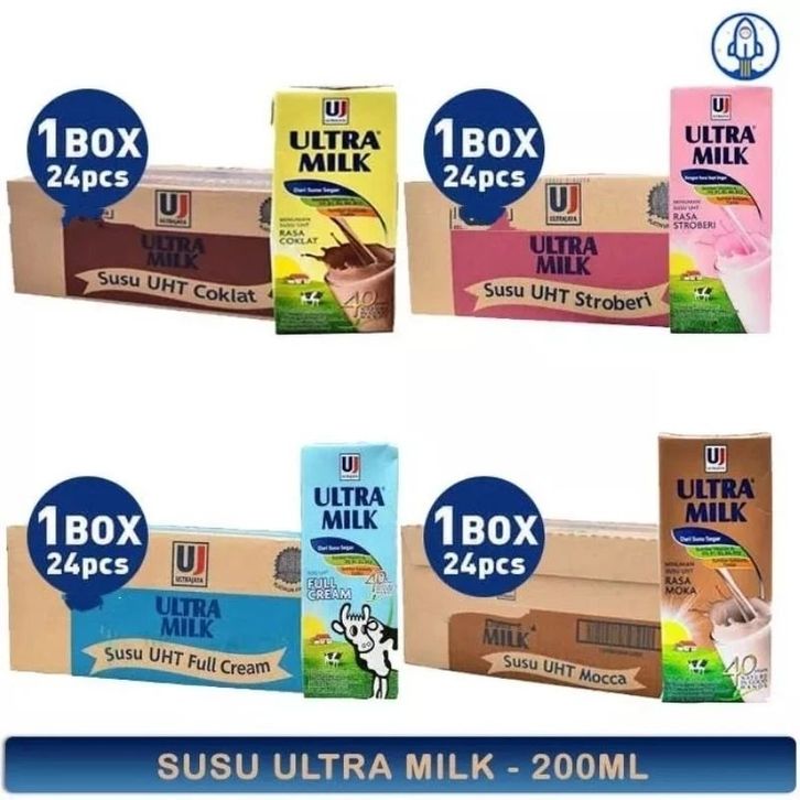 Susu Ultra Milk 200 ml 1 Karton Isi 24 Pcs Rasa Colelat Strawbarry Fullcream